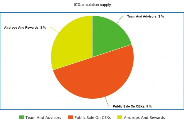 Initial circulation accounts for 10% of the total supply, providing liquidity and availability for early adopters and ecosystem participants.